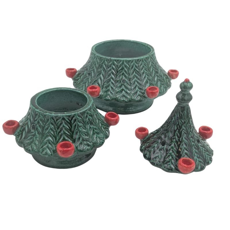 Ceramic Christmas Tree with Red Accents – 3-Piece Votive Candle Holder